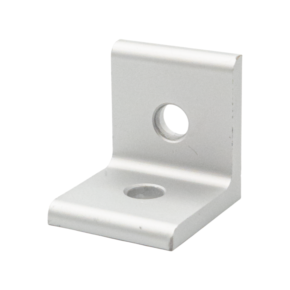 2 hole inside corner L-bracket w/slit. Accessory for MayTec aluminum extrusion T-slot profile systems.