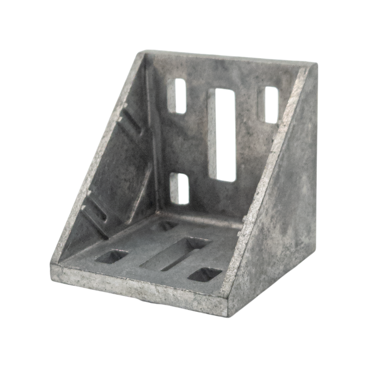 Aluminum angle bracket, 50×39mm. For reinforcing right-angle joints in aluminum extrusion frames.