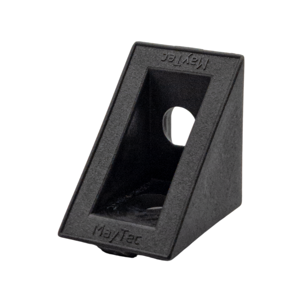 Powder coated inside corner bracket, 30×38mm. For reinforcing right-angle profile joints.