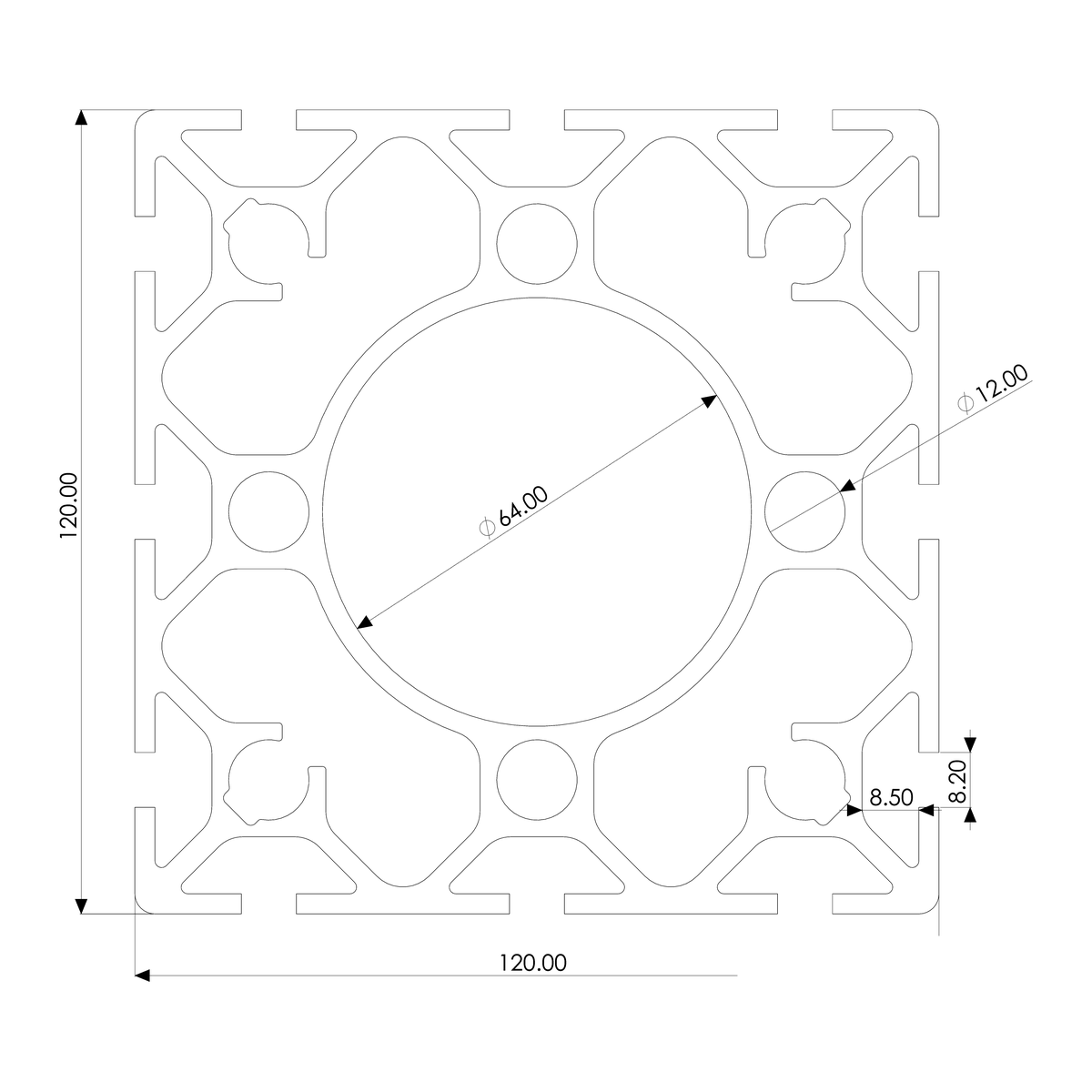 Extremely robust profile optimized for rigidity, strength, versatility. Used in heavy weight bearing machine guarding applications, heavy and rigid applications with vibration dampening and heavy rigidity requirements while still remaining modular and easy to assemble.
