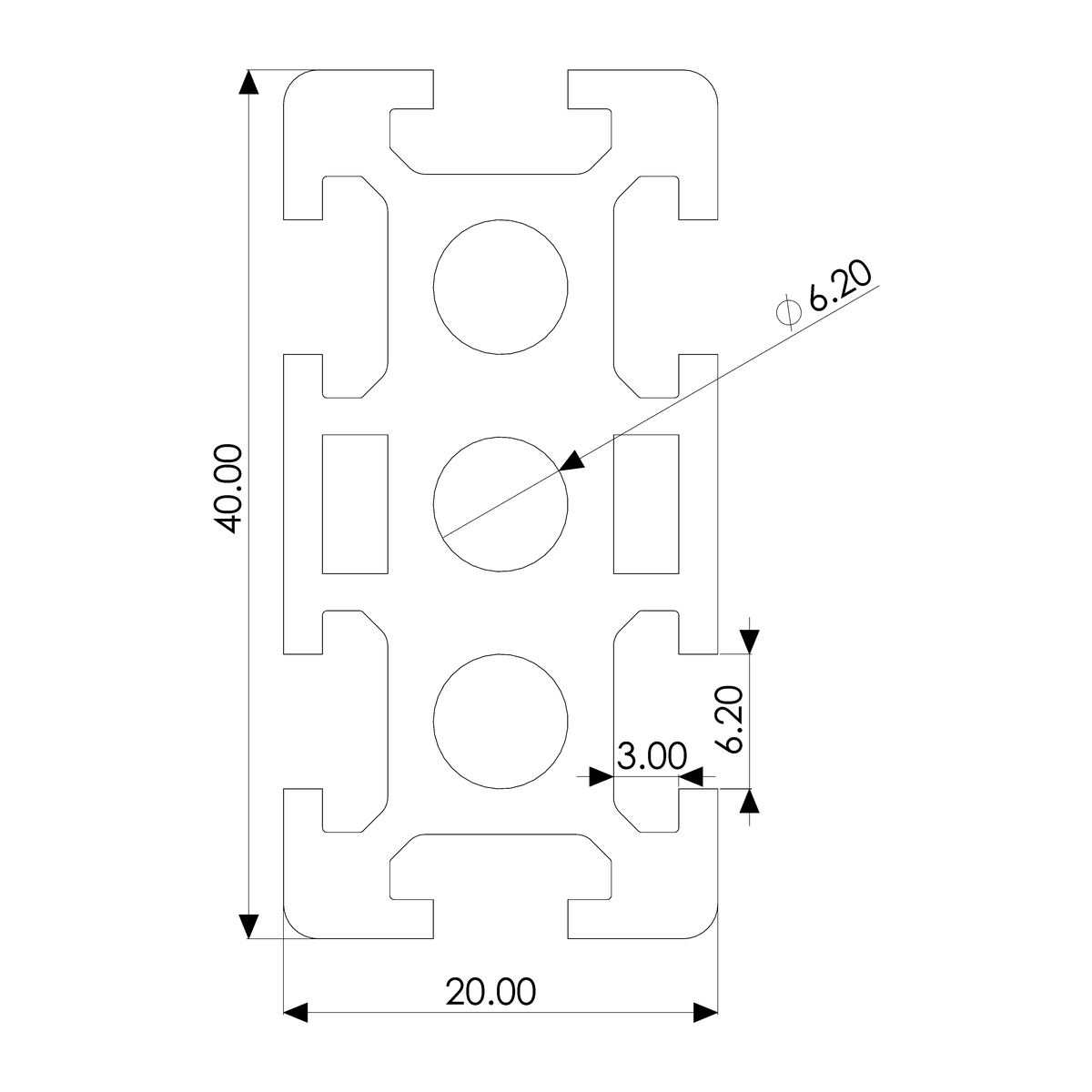 Profile 20×40 6H, heavy, plain