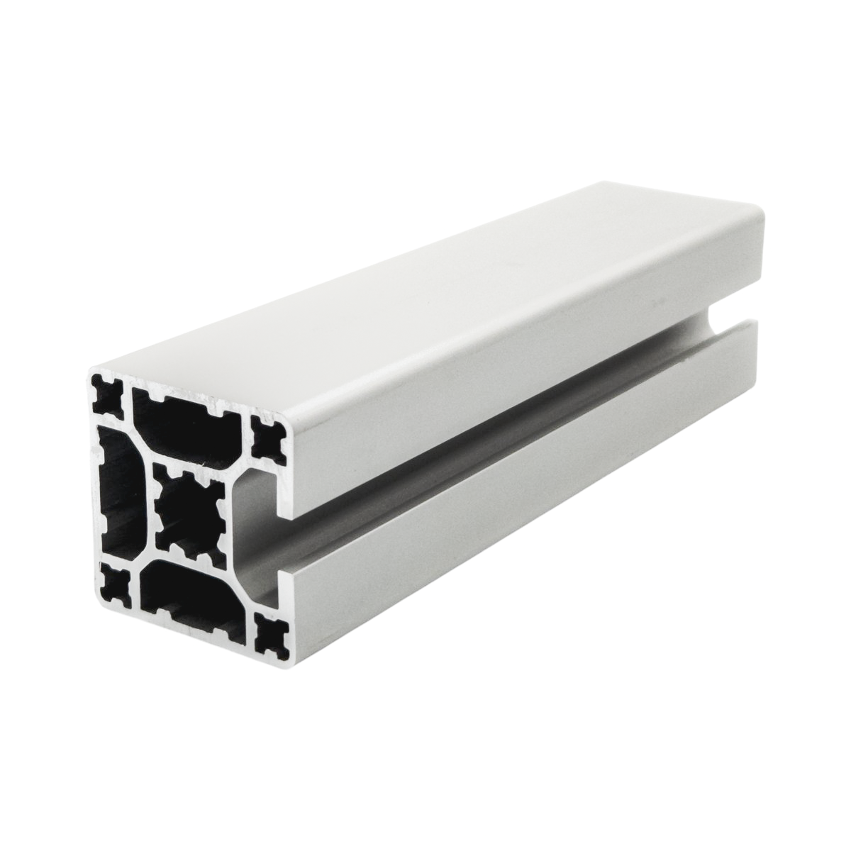 Extremely rigid and versatile profile. This profile is used in machine framing, and industrial enclosures.