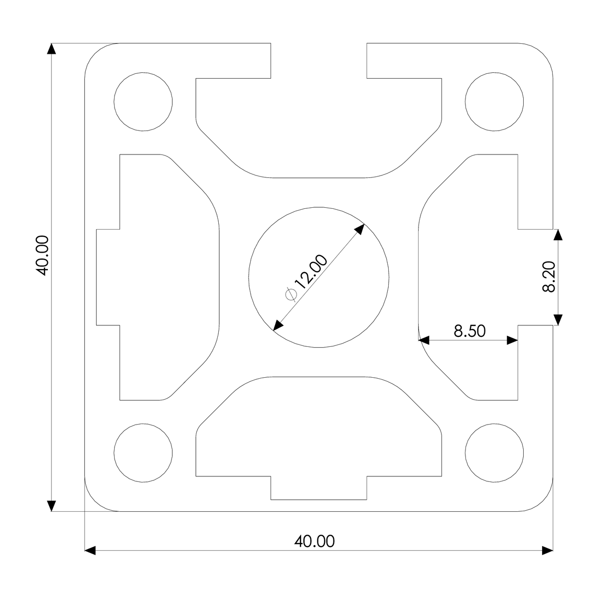 Profile 40×40, 2E, corner, heavy, plain