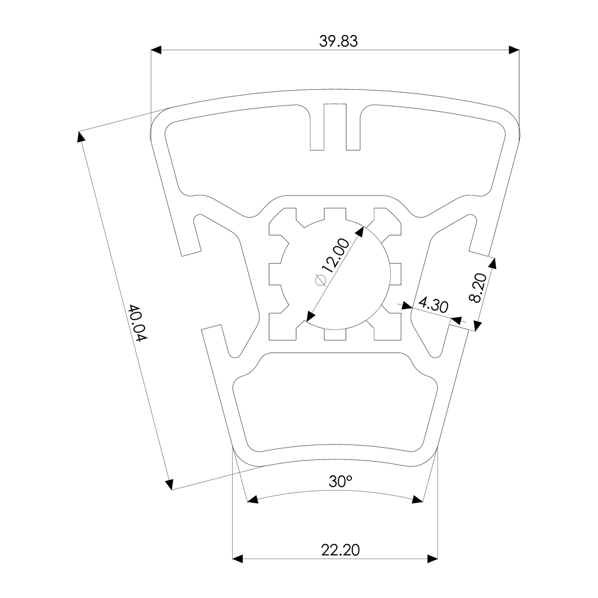Profile 40×40, round 30 deg., 2F, light