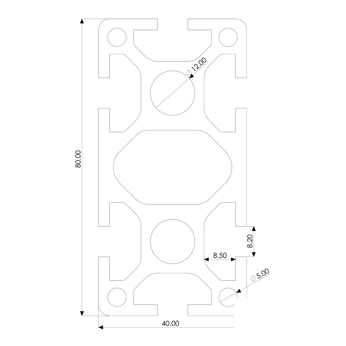 Extremely robust profile maximized for strength, rigidity and versatility. This profile is extremely commonly used in heavy machine framing and other heavy duty applications.