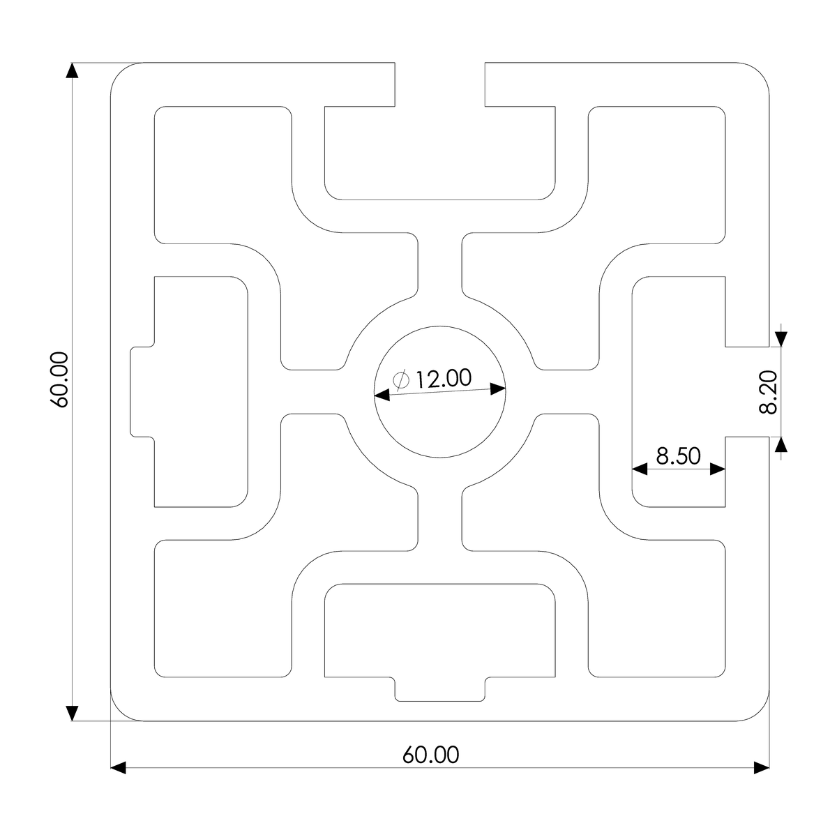 Used in very robust applications where aesthetics and a clean professional exterior is required, two corner slots provides a clean exterior for the edges of a frame while offering additional strength compared to the light profile version.