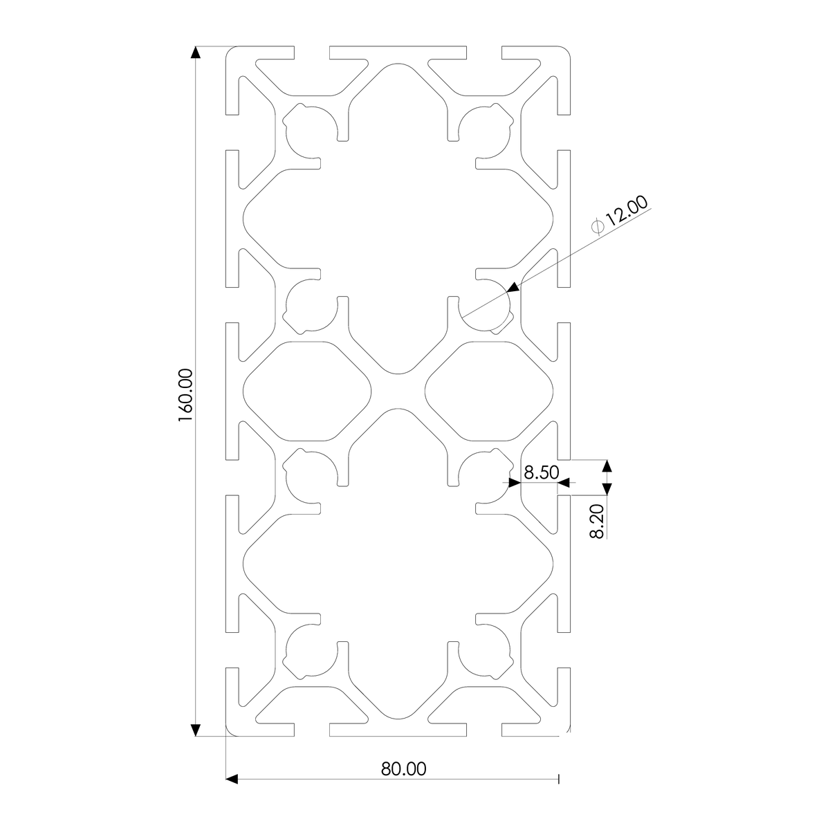 Profile 80×160, 12E, heavy, plain