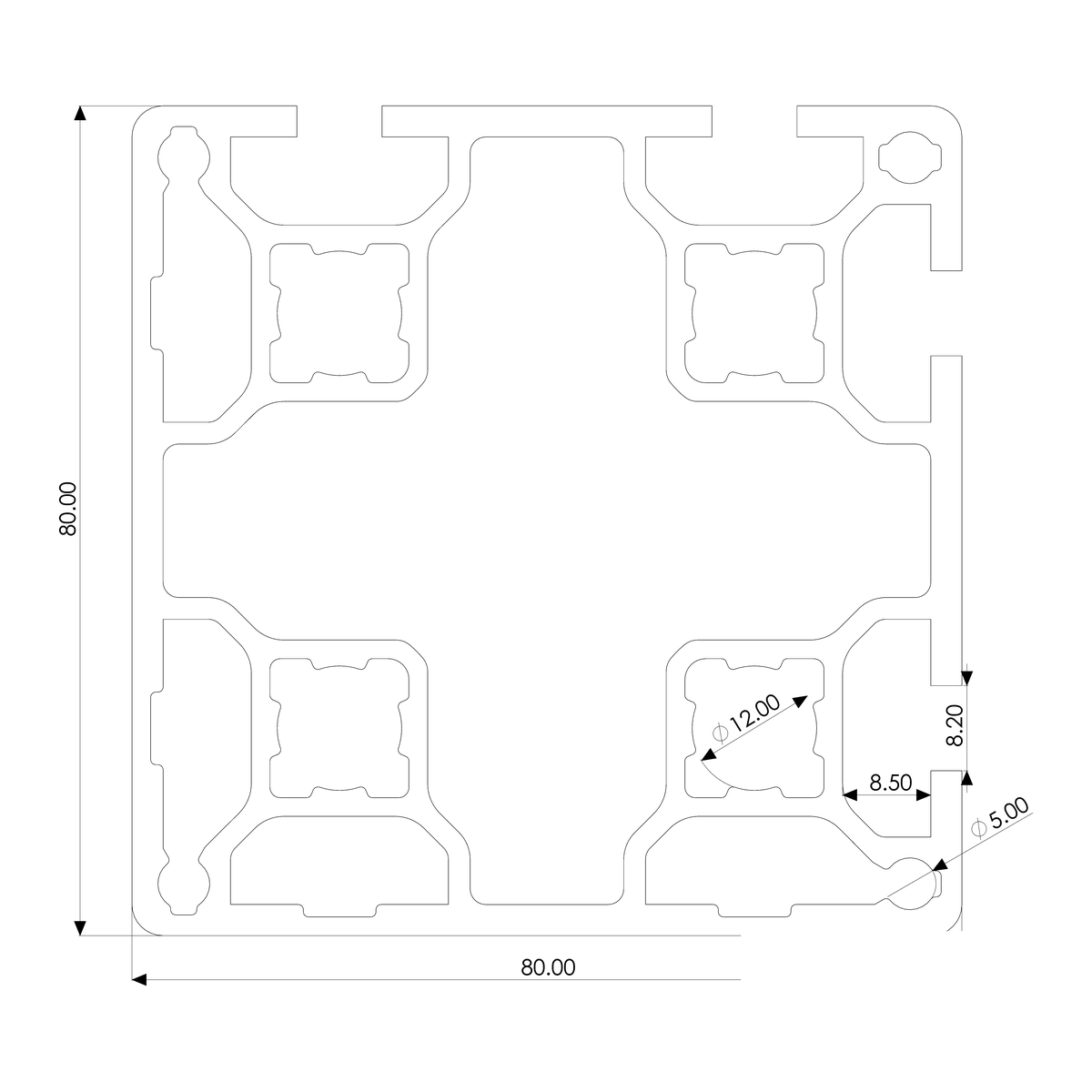 Profile 80×80, 4E, corner, light, plain