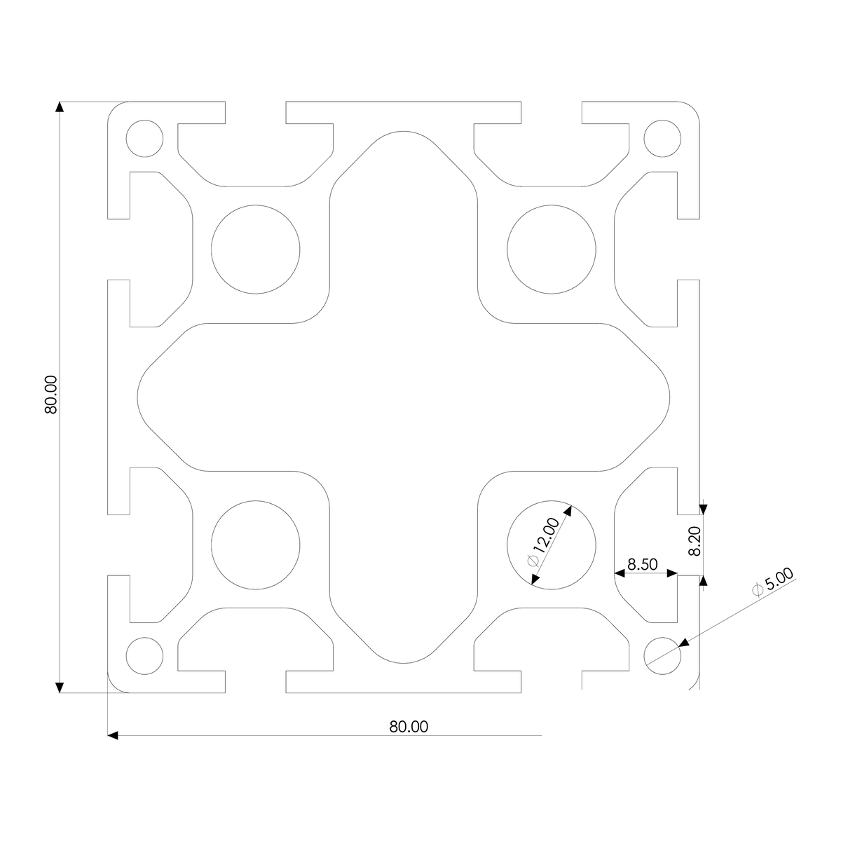 Profile 80×80, 8E, heavy, plain