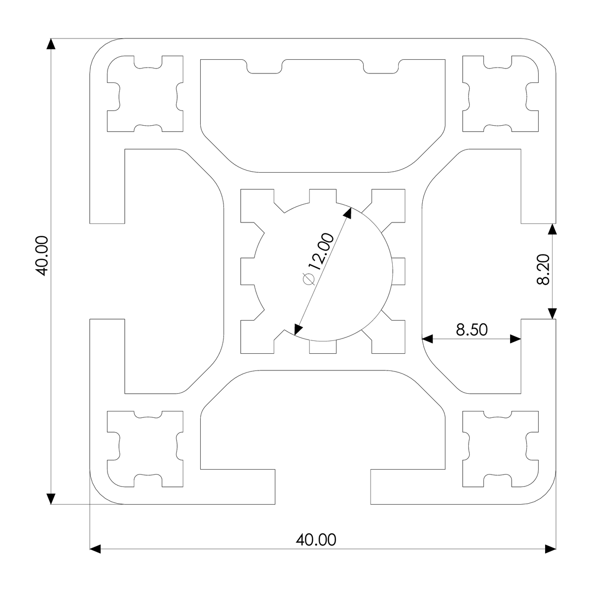 40x40 3EProfile Cross-Section · Click a side
